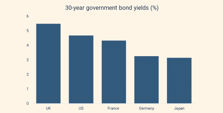 Long-term government bond yields have surged in 2025, rattling investors from Tokyo to Toronto. While this is partly a global phenomenon tied to swollen debt burdens, stubborn inflation and changing investor attitudes, the UK has been hit particularly hard: its 30-year gilt yields have reached levels not seen since the late 1990s.[1] The result is an escalation in borrowing costs for governments, corporations, and households—and in the UK, a narrowing of fiscal space ahead of a crucial 2025 Autumn Budget.